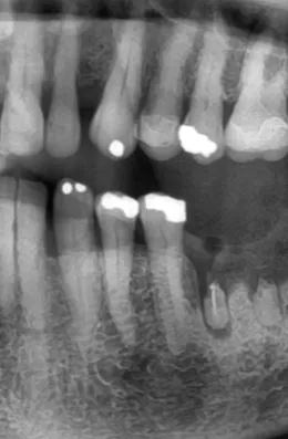 Frånvaro av stora cystor, rotfrakturer eller avancerad parodontit