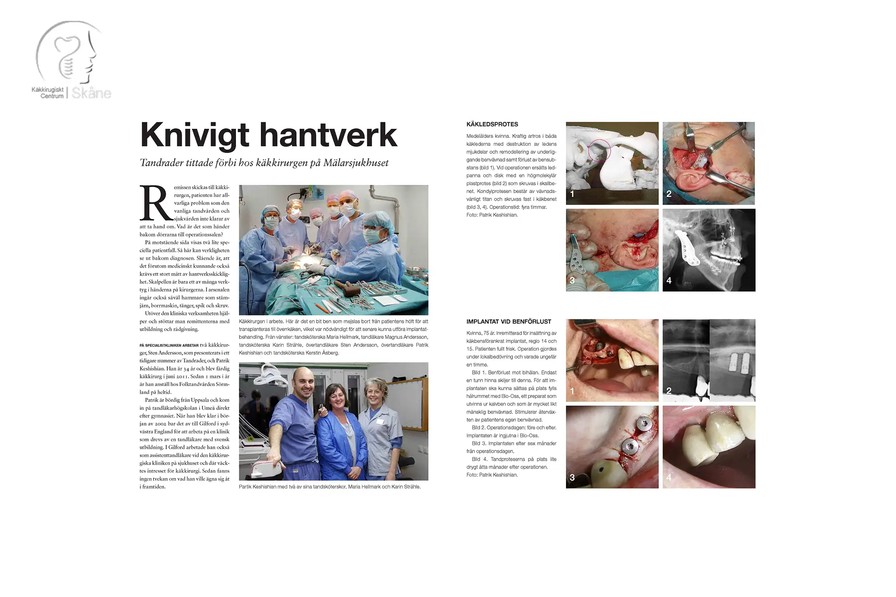 Välkommen att remittera till Käkkirurgiskt Centrum Skåne, er specialistklinik för implantatbehandling och visdomstandskirurgi i Malmö. Beläget centralt på Triangeltorget i Malmö, leds vår klinik av den erfarna käkkirurgen Patrik Keshishian, som har över 18 års erfarenhet inom tandvården och är expert inom oralkirurgi.