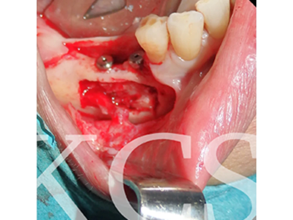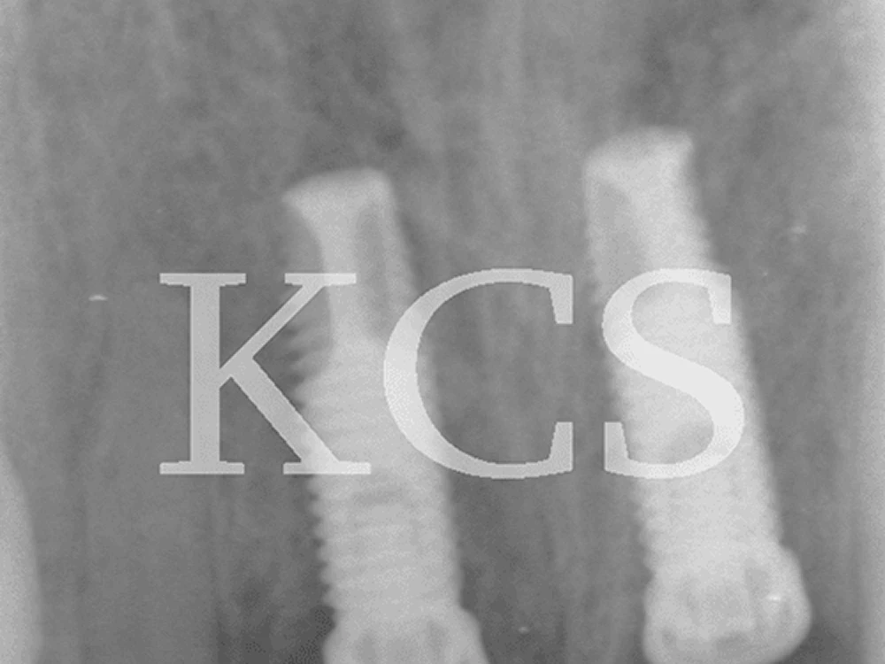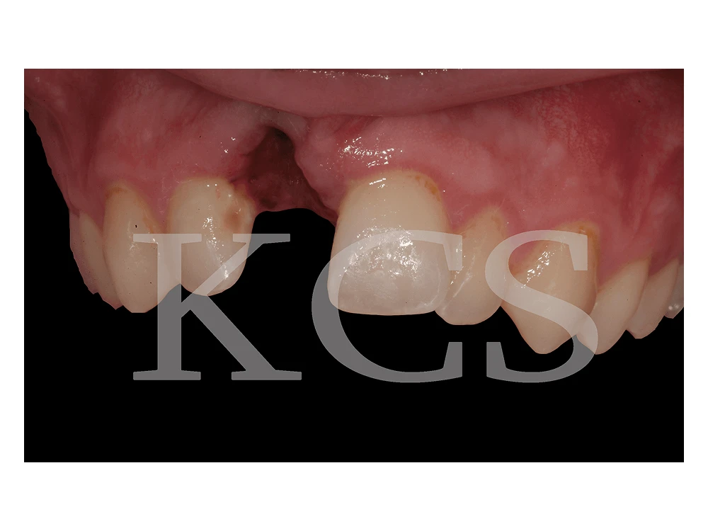 Båda framtänderna avlägsnades och två implantat installerades i området.