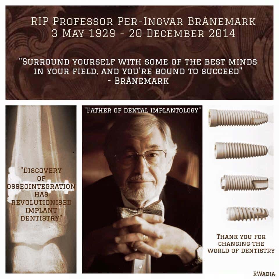 Brånemark är inte bara en historisk person inom implantologin. Hans principer är fortfarande grunden för hur vi arbetar idag: